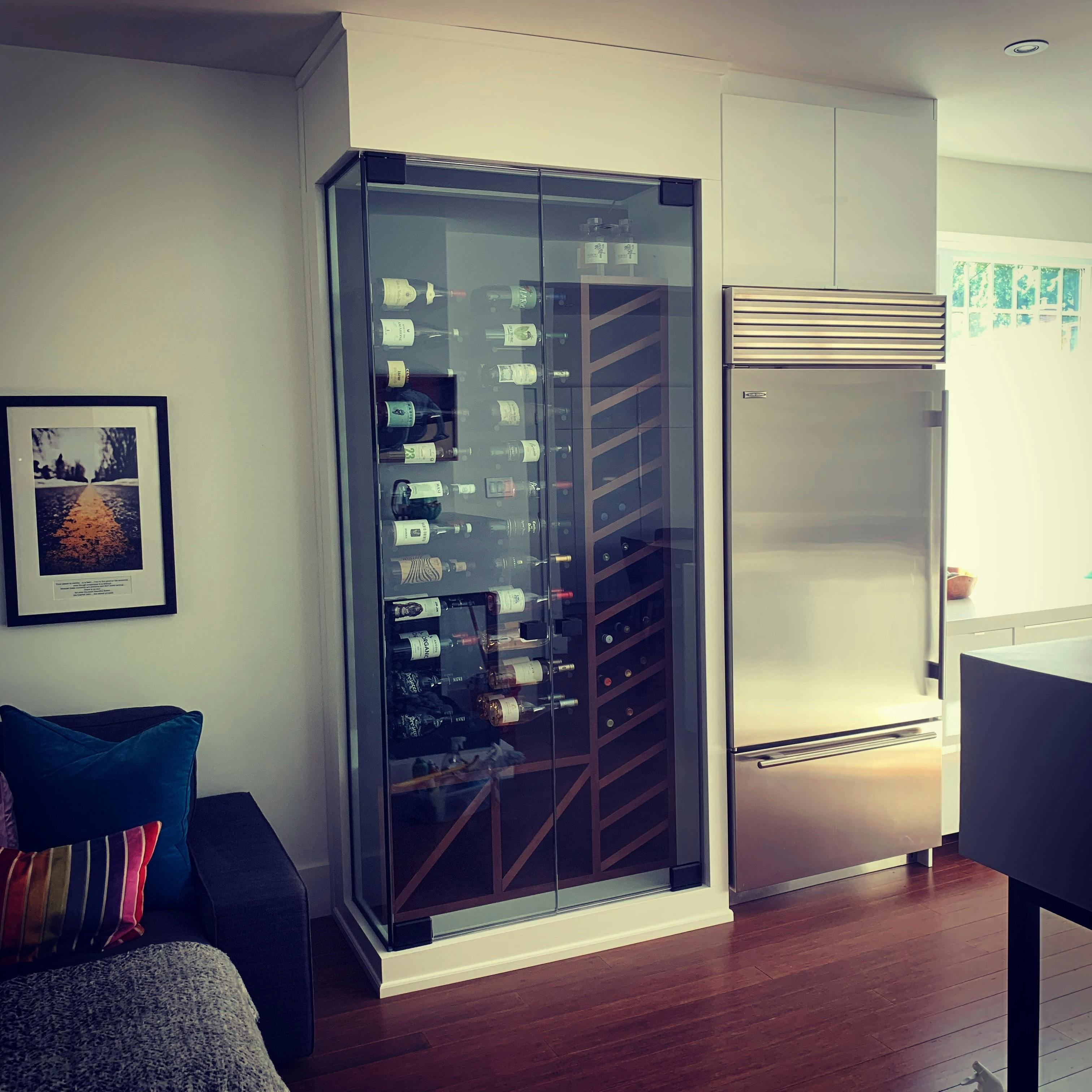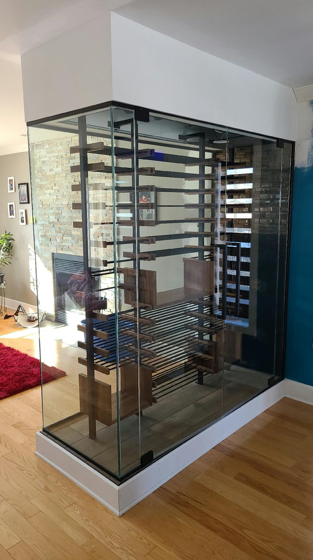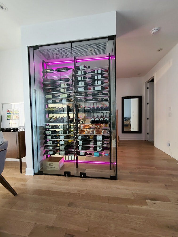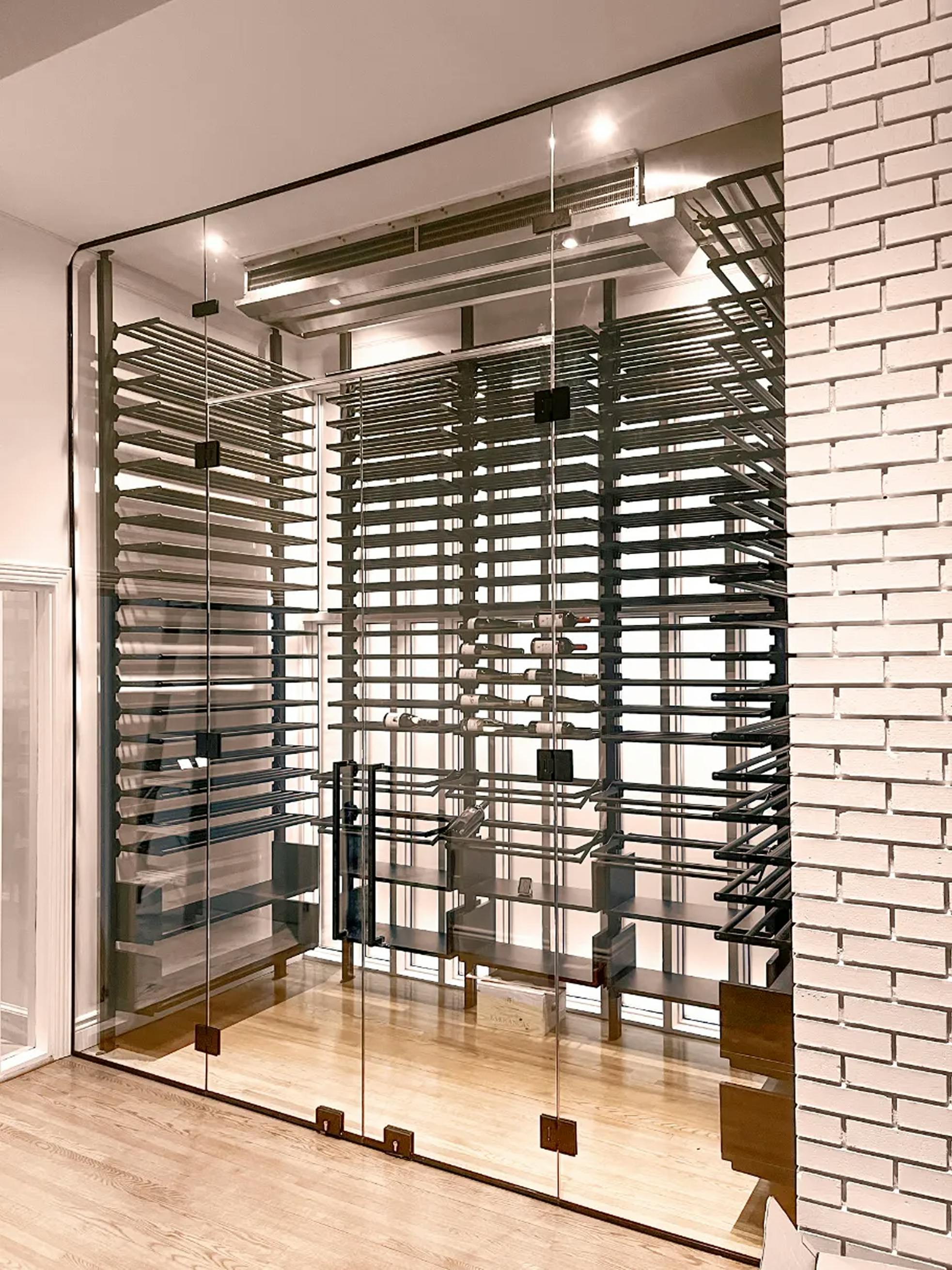 Glass-enclosed cellars in living areas, dedicated rooms, finished basements. Silent when the living room demands it; audible when usage and layout allow. Always: controlled climate and clean finishes.